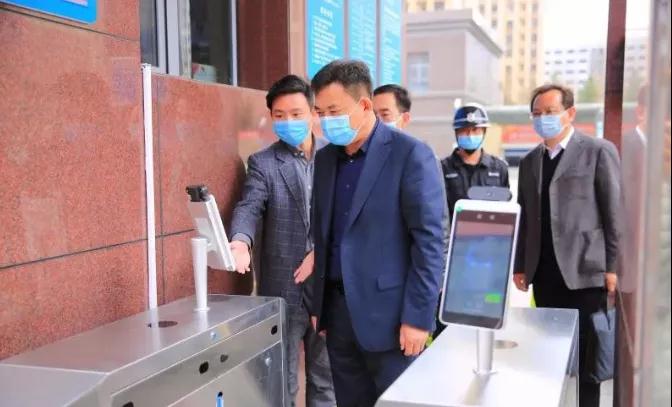 督查小組在視察入校體溫檢測點(diǎn)后,了解到智能測溫設(shè)備可通過在相關(guān)區(qū)域出入口部署人體測溫閘機(jī),實(shí)現(xiàn)體溫篩查與人臉識(shí)別雙重認(rèn)證通行,最大可能避免外來人員進(jìn)入先關(guān)區(qū)域,確保在疫情期間既不疏于疫情防控,也不漏學(xué)生安全防護(hù)。技術(shù)人員為陜西省教育廳副廳長王紫貴介紹智能體溫測量系統(tǒng)
